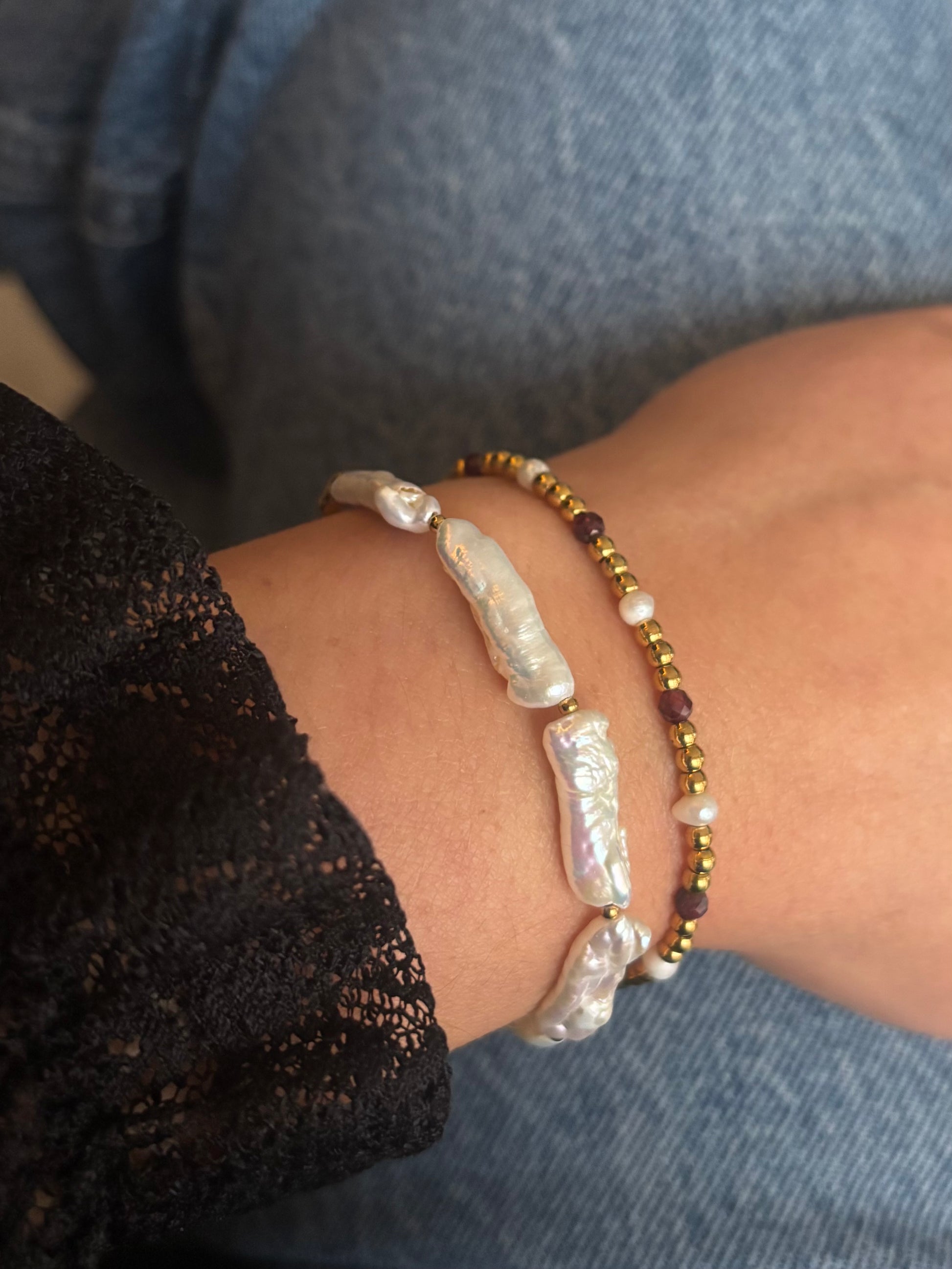 Alle parels hebben hun eigen, unieke vorm en glans wat zorgt dat elke armband haar unieke uitstraling heeft.